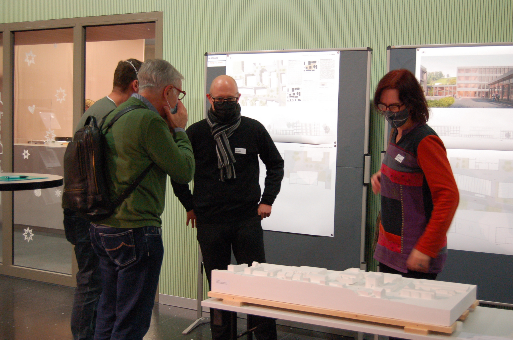 Am 16. Juni 2021 trafen sich interessierte Wettbewerbsteilnehmende in der Aula, um anschliessend das Gelände zu besichtigen und das Gipsmodell zu beziehen. Die Teilnahme am Anlass war fakultativ. Seither wurden weitere Gipsmodelle von interessierten Architekturbüros abgeholt. Wir sind gespannt auf die Projekteingaben.